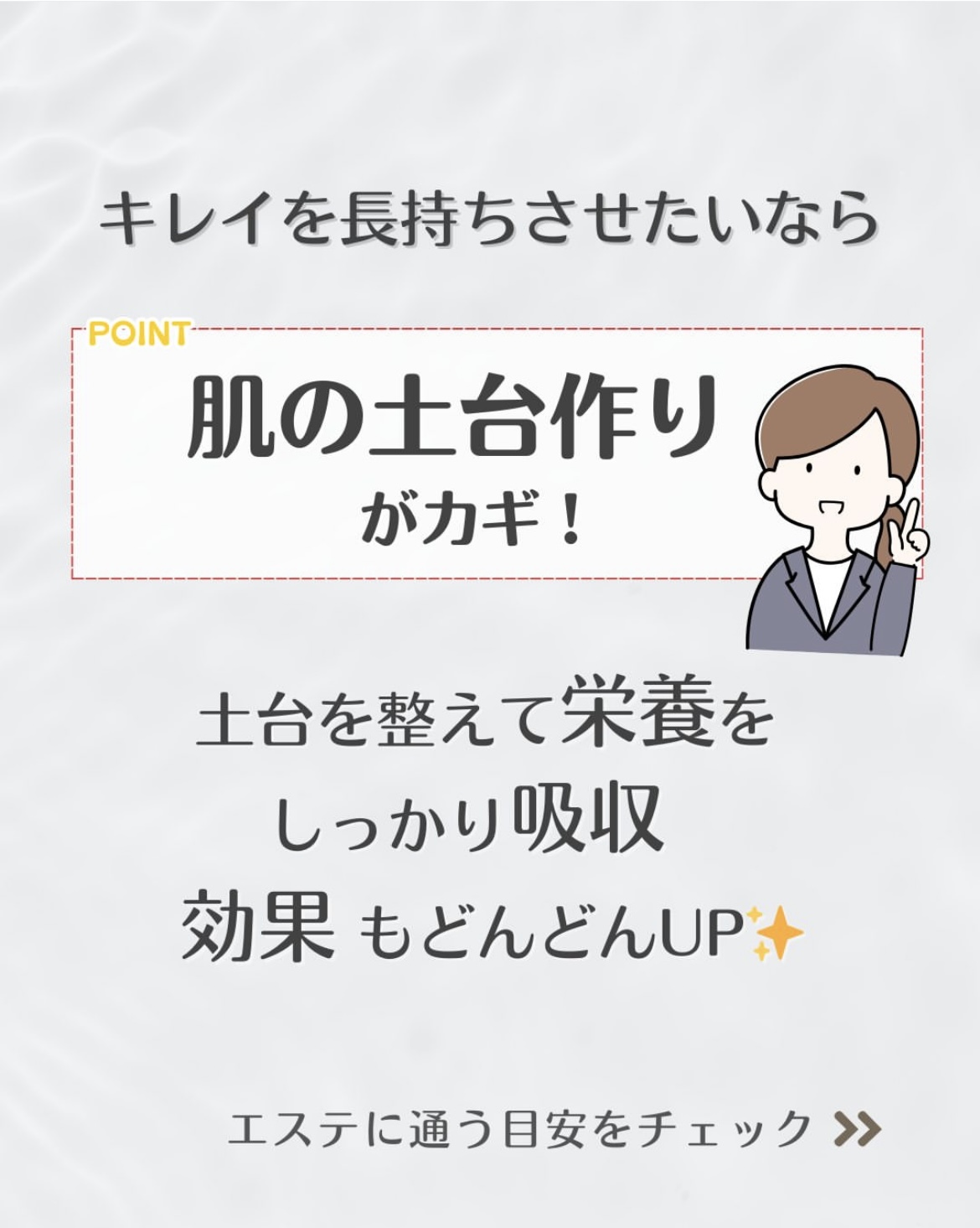 無理のない範囲で、 あなたのお肌に合ったプランを 一緒に考えていきしょう😆 効果が持続する方法もアドバイスいたします♪