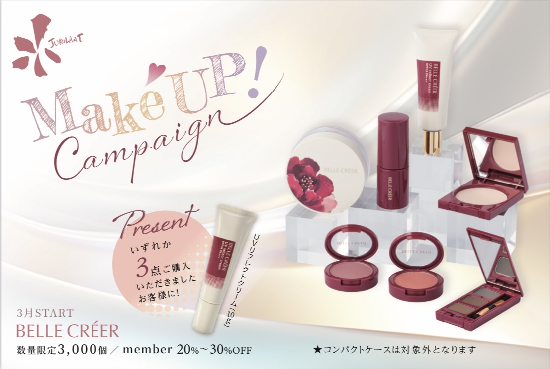 ご覧くださりありがとうございます♪3月start✨BELLE CREER(ベルクレエ)〜Make up キャンペーン〜いずれか3点をご購入いただいたお客様に、UVリフレクトクリーム(10
